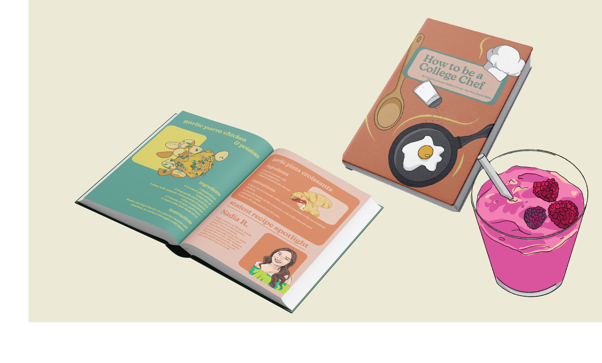 A cookbook that addresses this problem by using recipes recommended by other college students while also providing other resources like ingredient substitutions, measurement conversions, and essential cooking tools.
